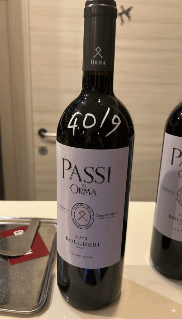 Passi di Orma – Bolgheri DOC – Blend di Merlot (40%), Cabernet Sauvignon (30%) e Cabernet Franc (30%), intenso e strutturato.